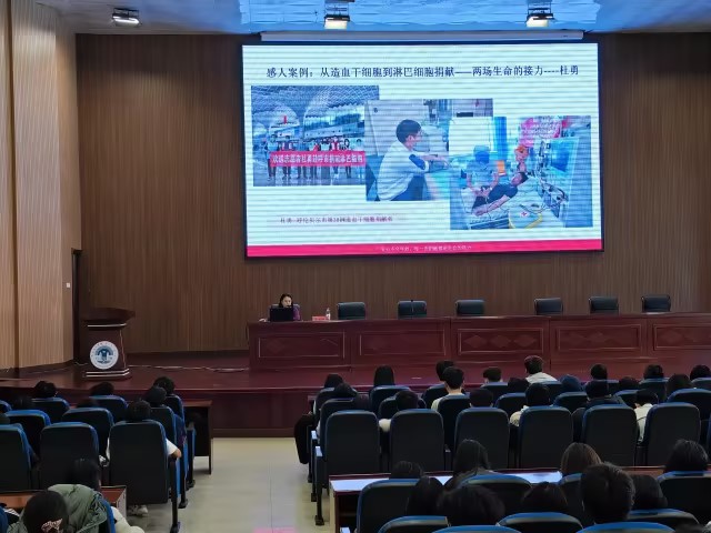 讲座现场还邀请到造血干细胞捐献者王丹、祝琳琳结合亲身经历进行分享。两位捐献者用朴实真挚的话语,讲述了自己从了解、犹豫到坚定参与捐献的全过程,用亲身经历展现了生命接力的温暖与力量,让在场学生真切感受到“三献”行为背后的责任担当与人间大爱,生动诠释了无私奉献、救死扶伤的人道主义精神。