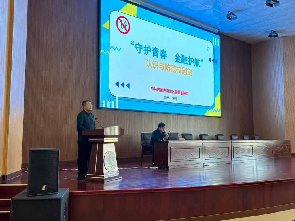 为落实金融安全进校园工作要求,切实提升学生金融风险防范意识、保障学生合法权益,10月22日下午,内蒙古自治区党委金融办与自治区助学中心联合,在我校图书馆四楼报告厅举办“金融知识进校园”校园贷防范宣讲活动。自治区助学中心副主任李天宇、宣教科科长任丽,自治区党委金融办王续卓、塔娜等嘉宾出席,我校学生工作处处长郝新君、各学院辅导员代表及400余名学生参与,活动由王续卓主讲、郝新君主持。