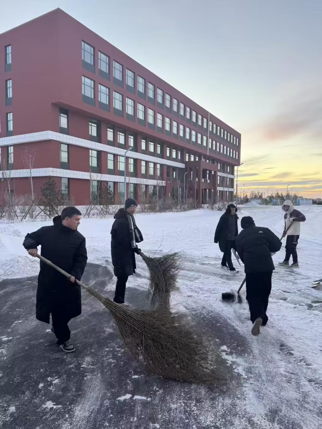 此次集中清理行动中,各二级学院领导率先垂范,带领师生志愿者重点对教学楼走廊、实验室角落、宿舍楼道、校园绿化带等区域的卫生死角、堆积杂物展开全面清扫整治。针对室外积雪,师生们手持铲雪板、大扫帚等工具,分工协作、干劲十足,将道路与绿化带的积雪彻底清理、规范聚堆,全力保障校园通行安全,让整洁畅通的环境成为冬日校园里的一道亮眼风景。
