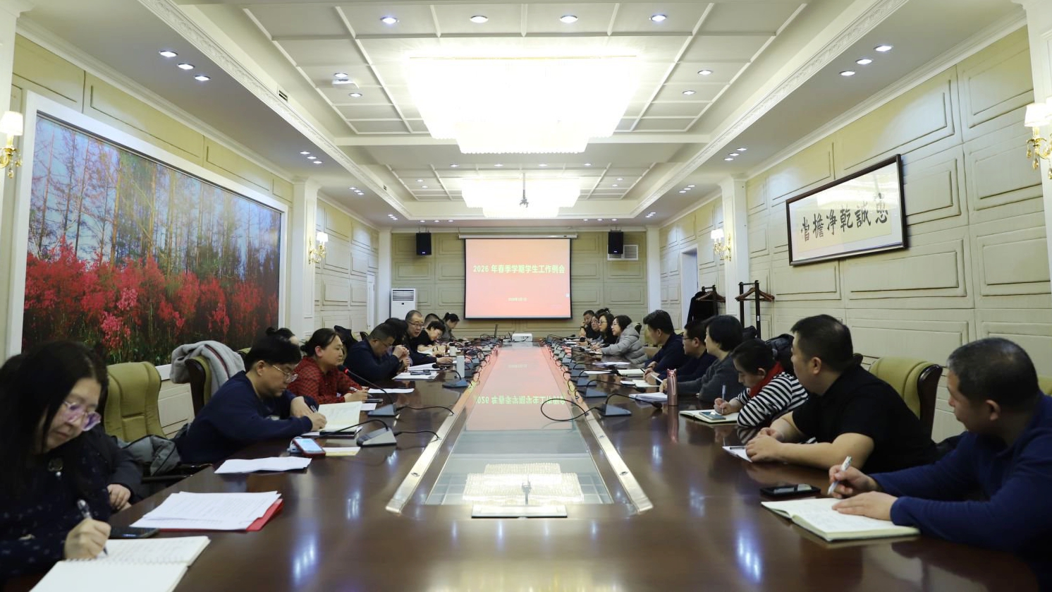 为深入贯彻落实立德树人根本任务,统筹部署新学期学生工作,进一步明确工作方向、压实工作责任,3月1日下午,我校在图书馆三楼报告厅召开2026年春季学期学生工作例会。校党委副书记张宏天主持会议并讲话。党委宣传部、党委统战部、党委组织部(党校)、校园安全管理处相关负责人,各学院分管学生工作领导,团委、学生工作处副科级以上人员参加会议。