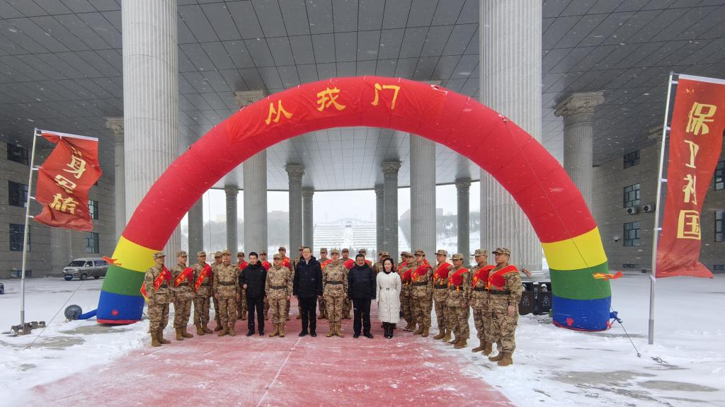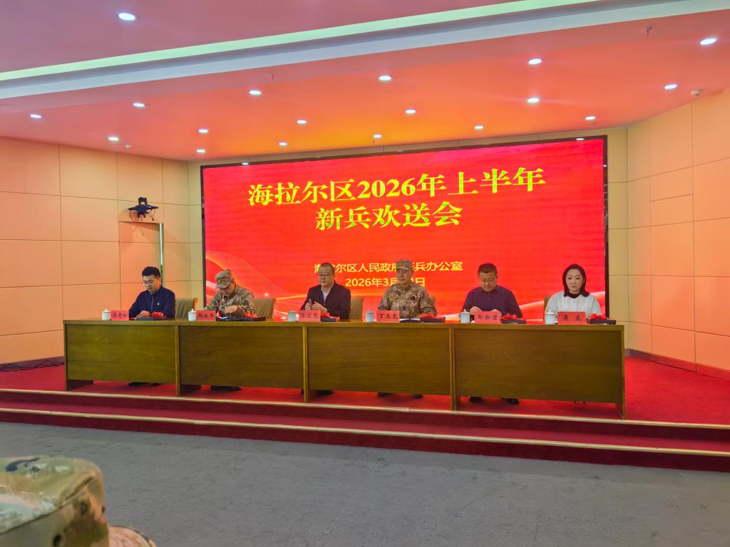 3月13日,海拉尔区2026年上半年新兵欢送仪式在我校崇文楼A201会议室举行。校党委副书记张宏天,海拉尔区人民武装部部长丁玉龙、政委向治华,呼伦贝尔职业技术学院学生工作处处长吴青松,我校学生工作处(党委学生工作部、武装部)处长郝新君,新兵家属、辅导员及呼伦贝尔学院国防实践团成员等90余人齐聚一堂,为22名应征入伍的青年送行。仪式由向治华主持。