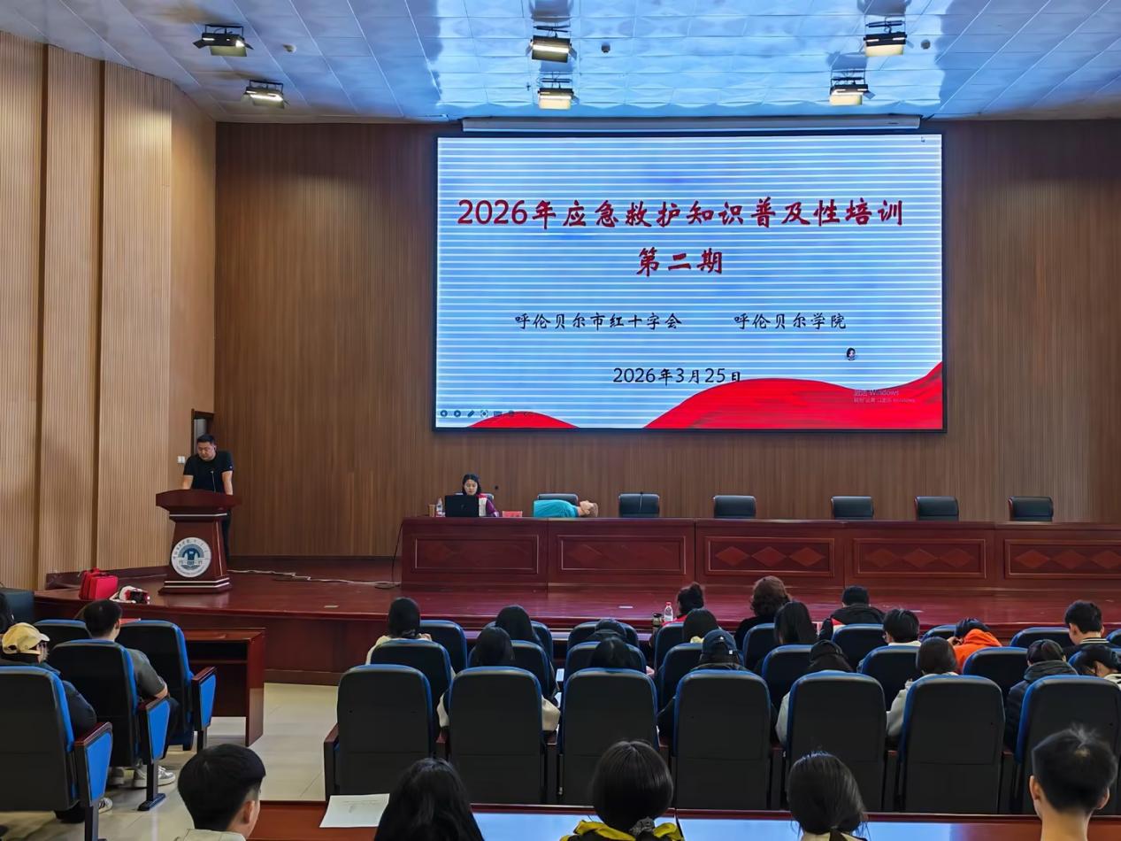 为进一步普及应急救护知识,提升学生应对突发状况的自救互救能力,筑牢校园安全防线,3月25日下午,我校本年度第二期应急救护普及性培训在图书馆四楼报告厅顺利开展。本次培训邀请呼伦贝尔市红十字会资深讲师主讲,围绕心肺复苏与创伤救护两大核心技能展开系统教学,各学院129名学生代表参训。