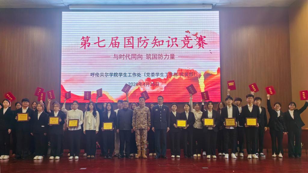 4月25日上午,我校第七届“与时代同向,筑国防力量”国防知识竞赛,在学校图书馆四楼报告厅正式拉开帷幕。海拉尔区人民武装部部长丁玉龙、学生工作处(党委学生工作部、武装部)处长(部长)郝新君及各二级学院团学办主任等参加活动。来自全校16个学院的参赛队伍同台竞技,以知识比拼展现国防素养与青春担当。